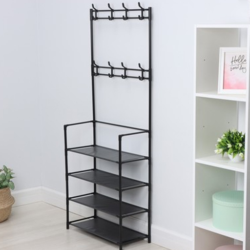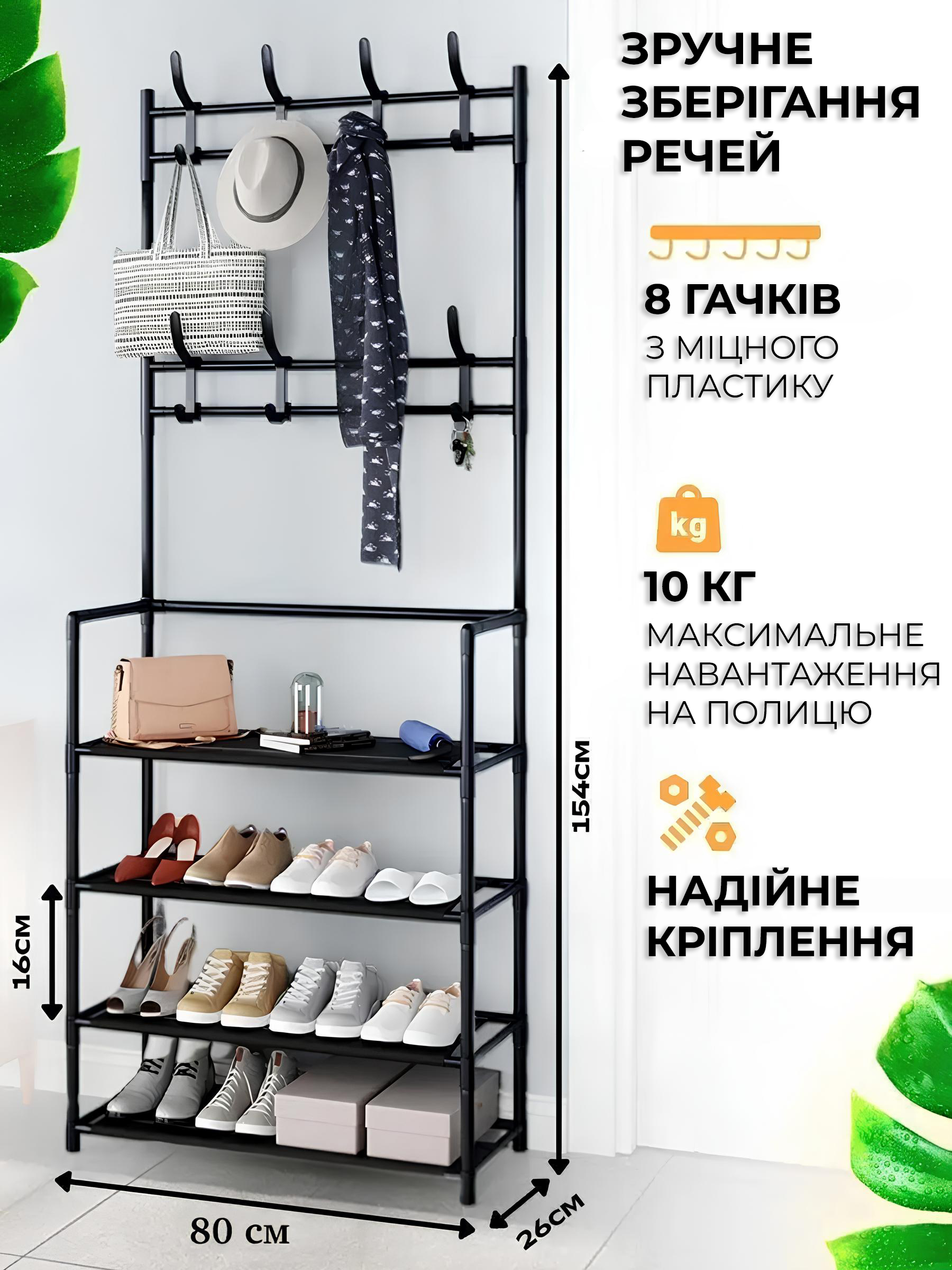 — ідеальне рішення для організації вашого передпокою чи гардеробу. Вона поєднує в собі полички для взуття, гачки для речей, місце для сумок та компактний сучасний вигляд. Створіть порядок з легкістю!